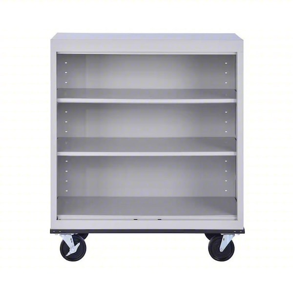 Mobile Bookcase, Product Type Mobile Bookcase, Material Steel, Number of Dividers 0, Overall Height 42 in, Overall Depth 18 in, Overall Width 36 in, Caster Type (2) Rigid, (2) Swivel with Brake, Color Dove Gray, Back Style Closed, Number of Shelves 3, Weight Capacity 600 lb, Shelf Adjustment Increment 1 in, Standards ANSI/BIFMA, Greenguard, Shelf Capacity 200 lb