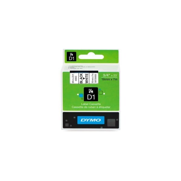DYMO® D1 STANDARD LABELS 3/4" BLACK ON WHITE FOR HUNDREDS OF TASKS AROUND THE OFFICE OR HOME OFFICE, SUCH AS FILING, STORAGE AND ASSET MANAGEMENT. AVAILABLE IN CONTINUOUS LABEL CASSETTES, SO YOU CAN CREATE SHARP, EASY-TO-READ LABELS OF JUST ABOUT ANY LENGTH MACHINE COMPATIBILITY