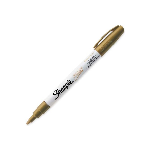 Sharpie paint marker, oil-based, fine, metallic gold ink, 1 each oil-based paint markers with a fine point apply smooth and vivid colors on a variety of surfaces from paper to fabric to metal. Ink is opaque and glossy, even on dark surfaces. Quick-drying is also fade-resistant, water-resistant, abrasion-resistant and xylene-free. Easily overlay colors and other mediums. Certified ap nontoxic. Water resistant/fade proof/abrasion resistant/non-toxic/quick-drying ink/low-odor ink.