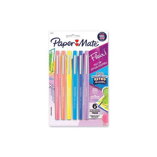 Smear-resistant ink that won't bleed through the page combine to give all your drawings, doodles, and projects a pop of indulgent color. Flair pens write in bold, colorful lines and have a point guard that prevents the tip from fraying. Treat yourself to bold, fun, excitingly sweet sketching and writing. Retro Accents. Pen Sub-Brand & Product Family: Flair Felt Tip; Pen Type: Porous Point Pen; Pen Style: Stick; Pen Tip Type: Bullet.