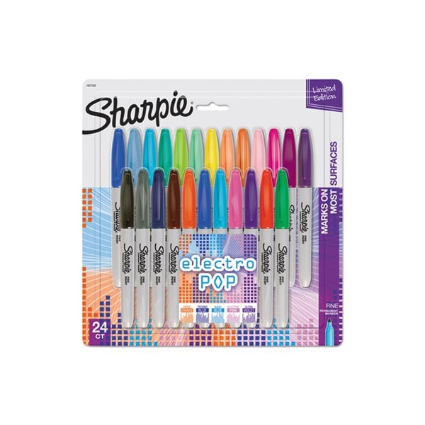 Bold to the max and permanent to the core, Sharpie Permanent Markers inspire you to transform ordinary surfaces into passionately creative statements. Made to write practically everywhere, vivid Sharpie markers eliminate dull and boring. The original permanent marker, Sharpie has iconic ink that dries quickly and resists both water and fading. While pale imitations wither away, Sharpie markers make creations that endure. Featuring a bold fine point built for jaw-dropping marks, Sharpie Permanent Markers ignite courageous self-expression. Marker Ink Type: Permanent; Marker Tip Type: Bullet; Marker Tip Size text: Fine; Marker Colors: Assorted.