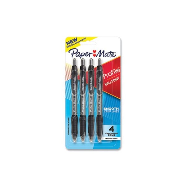 Experience fluid, effortless writing with the Paper Mate Profile Retractable Ballpoint Pen. The bold ink dries quickly to help reduce smudges for tidy, clean writing, while the click-advance retractable tip protects pockets and purses. With its smooth-flowing ink and soft contoured grip, this pen keeps you comfortable during extended writing sessions. Pen Sub-Brand & Product Family: Profile; Pen Type: Ballpoint Pen; Pen Style: Retractable; Pen Tip Type: Conical.