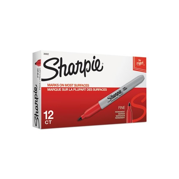 Bold to the max and permanent to the core, Sharpie Permanent Markers inspire you to transform ordinary surfaces into passionately creative statements. Made to write practically everywhere, vivid Sharpie markers eliminate dull and boring. The original permanent marker, Sharpie has iconic ink that dries quickly and resists both water and fading. While pale imitations wither away, Sharpie markers make creations that endure. Featuring a bold fine point built for jaw-dropping marks, Sharpie Permanent Markers ignite courageous self-expression. Marker Ink Type: Permanent; Marker Tip Type: Bullet; Marker Tip Size text: Fine; Marker Colors: Red.