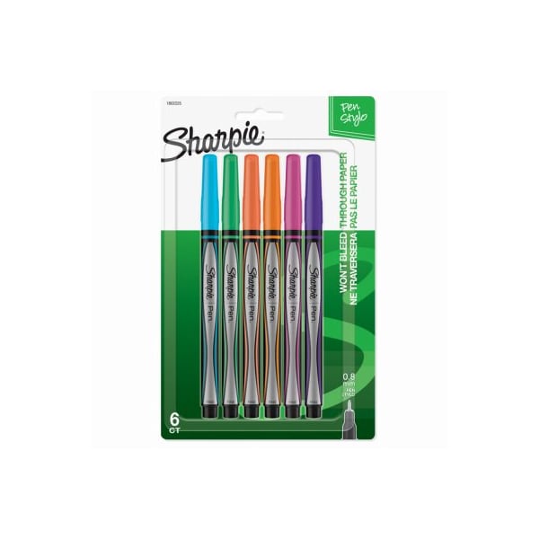 Sharpie 6 Pack 8MM Point Assorted Colors Pens, Won't Bleed Through Paper, Includes 1 each of Turquoise, Clove, Coral, Orange, Hot Pink, and Purple FinePoint Pens
