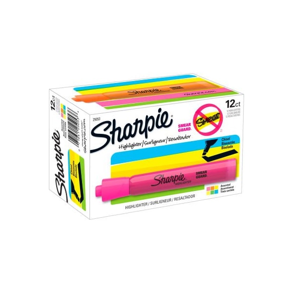 Sharpie accent tank style highlighter - chisel tip - assorted colors - 12 pack large ink supply delivers dependable highlighting. Bright, colorful ink stands out on the page. Versatile chisel tip easily produces wide and narrow lines. Smear guard ink technology reduces smudging (let ink dry before highlighting). sold by the pack quantity of 12 markers.