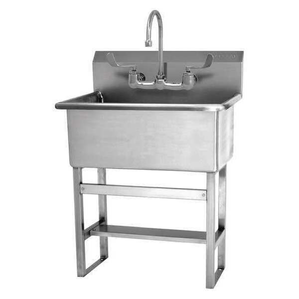 Floor Mount, 2 Hole, Dual Manual Handle, Silver, Scrub Sink