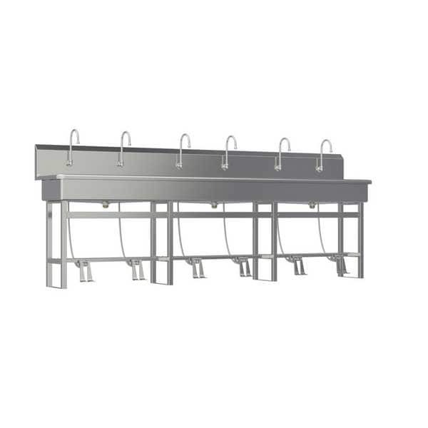 Floor Mount, 6 Hole, Dual Foot Pedal, Silver, Wash Station