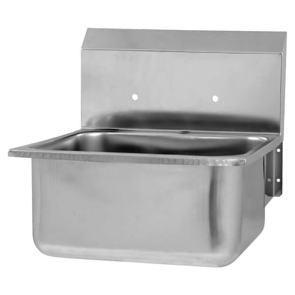 Sink, Stainless Steel, 16 Gauge, Overall Length 21 In., Overall Width 20 In., Overall Height 19.5 In., Number of Stations 1, Single Bowl, Bowl Size 19L x 16W x 10D In., Mounting Type Wall, Faucet Mounting Centers 8 In., Number of Holes 2, Drain Opening 2 In., Electropolished Color/Finish, Standards NSF, Includes Wall Mounting Bracket and Strainer