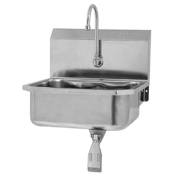 Hands Free Sink, Material of Construction Stainless Steel, Gauge 18, Overall Length (In.) 19, Overall Width (In.) 18, Overall Height (In.) 16-1/2, Number of Stations 1, Bowl Single, Bowl Size (In.) 17 x 14 x 7D, Back Splash 9-1/2 In., Side Splash No, Mounting Type WallNumber of Holes 1, Drain Opening (In.) 2, Color/Finish Electropolished, ADA Compliant No, Standards NSF/ANSI 372, Compliance Certified For Use In Potable Water Applications