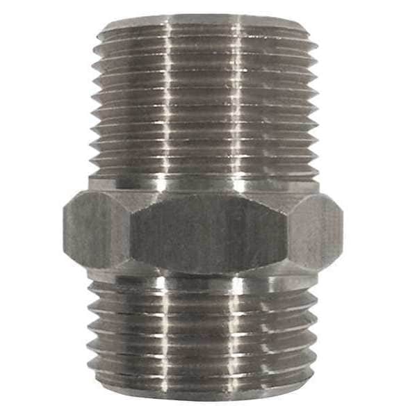 Hose Adapter, 3/4 In., Connection 3/4 In. FGHT x 3/4 In. MNPT, Chrome Finish, Stainless Steel Material of Construction, Inlet 3/4 In., Outlet 3/4 In., For Use With Nozzles and Hose