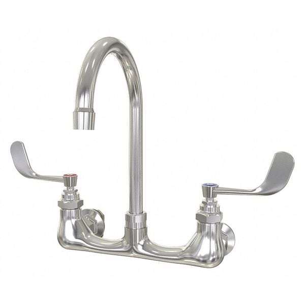Manual Gooseneck Service Sink Faucet, 8" Mount, Chrome 2 Hole
