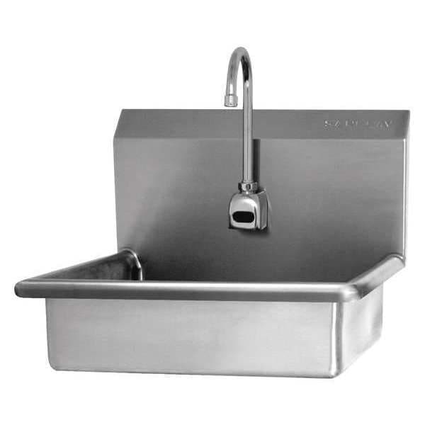 Mount Sink, With Faucet, Body Material Stainless Steel, Mounting Type Wall, Color Stainless Steel, Overall Length 19 In., Overall Width 16 In., Overall Height 15 In., Bowl Size 16 In. x 12-1/2 In. x 6 In., Bowl Depth 6 In., ADA Compliant No, Back Splash Yes, Bowl Shape Rectangular, Back Splash Height 9 In., Side Splash No, Faucet Operation AC Sensor, Number of Stations 1, Drain Opening 2 In., Finish Polished, Gauge 16, Faucet Mounting Centers Center Hole Only, Faucet Hole Dia. 7/8 In.