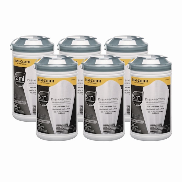 Sani Professional® Disinfecting Multi-Surface Wipes, 7 1/2 x 5 3/8, 200/Canister, 6/Carton