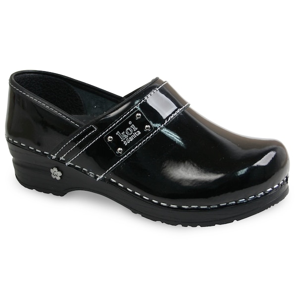 Women's Closed Back Clog, Patent Leather Upper, Polyurethane Outsole, Black, Size 5.5-6 M
