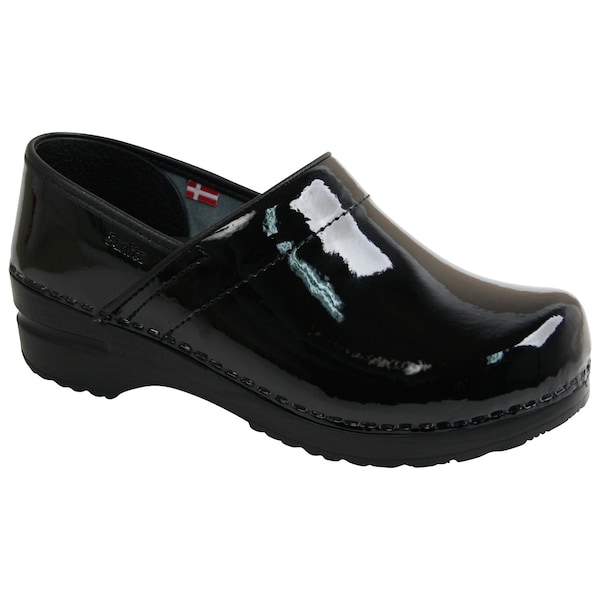 Women's Closed Back Clog, Patent leather Upper, Polyurethane Outsole, Black, Size 9.5-10 W