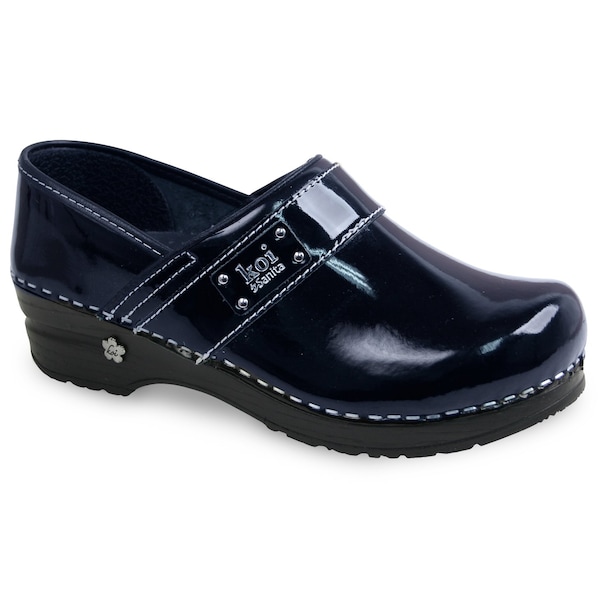 Women's Closed Back Clog, Patent Leather Upper, Polyurethane Outsole, Blue, Size 8.5-9 M