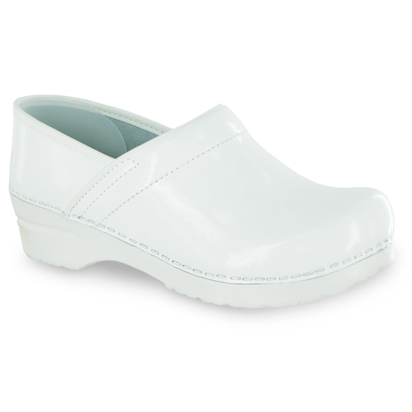 Women's Closed Back Clog, Patent leather Upper, Polyurethane Outsole, White, Size 8.5-9 M