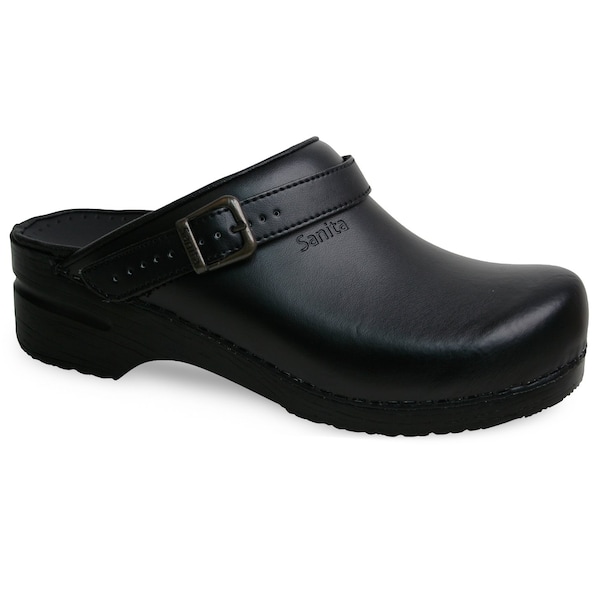 Women's Open Back Clog, PU-coated leather Upper, Polyurethane Outsole, Black, Size 8.5-9 M