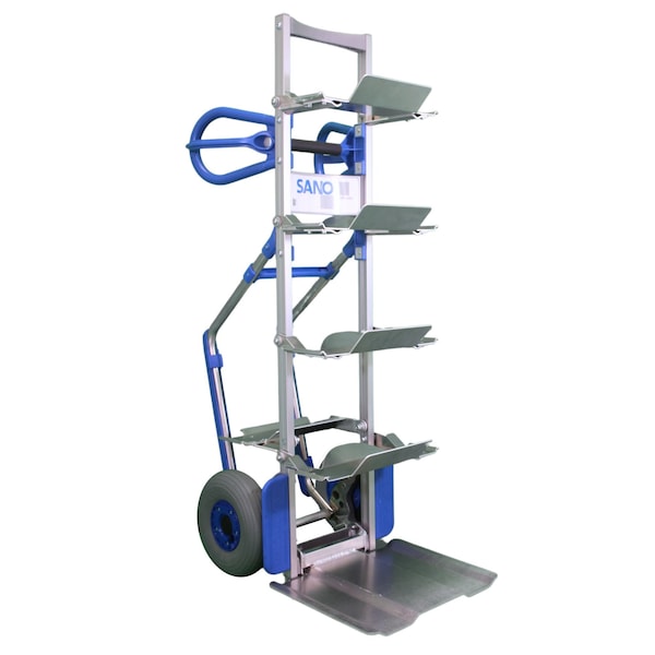 The Liftkar MODULKAR AQUA is a specialized handtruck designed for transporting 5-gallon water jugs with maximum efficiency and ease. Built with a durable, corrosion-resistant frame, this model is ideal for beverage distribution, water delivery services, and other industries requiring safe and stable transport of bottled liquids. Featuring a loop grip handle, the MODULKAR AQUA provides superior control and comfort, reducing strain on the user during transport. Its non-marking wheels, mounted on high-quality ball bearings, ensure smooth movement across various surfaces, while the stair-gliding feature enhances efficiency when navigating steps. With five foldable trays, this hand truck can securely carry up to seven bottles, making it a practical solution for high-volume operations. Weighing just 37.5 lbs including the toeplate, the MODULKAR AQUA is both lightweight and incredibly strong, ensuring effortless handling without sacrificing durability. The ergonomically designed, fully adjustable handle allows for customized comfort, while the quick-change wheel system enables easy maintenance. This hand truck is built to withstand demanding daily use while optimizing workflow and productivity.