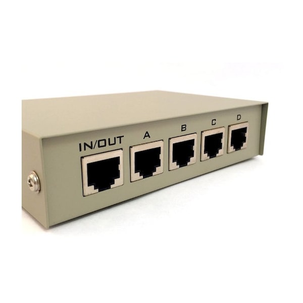 SANOXY A/B RJ45 Ethernet Switch Box. With this 4 port RJ45 Network/Ethernet Sharing Switch Box you can switch between four RJ45 Ethernet devices with the push of a button. It is easy and convenient to use, just press the relative button to switch. No power required, no additional software needed. SANOXY RJ45 Network 4-way ABCD Sharing Switch Box. RJ45 Network 4-way ABCD Sharing Switch Box. Bi-Directional: Can be used as a 4x1 4 in, 1 out or 1x4 1 in, 4 out switch. Can be used with RJ45 network devices including 8 wire phone applications. Long Life: Switch more than 100,000 times. No power required. No software required. Plug and Play