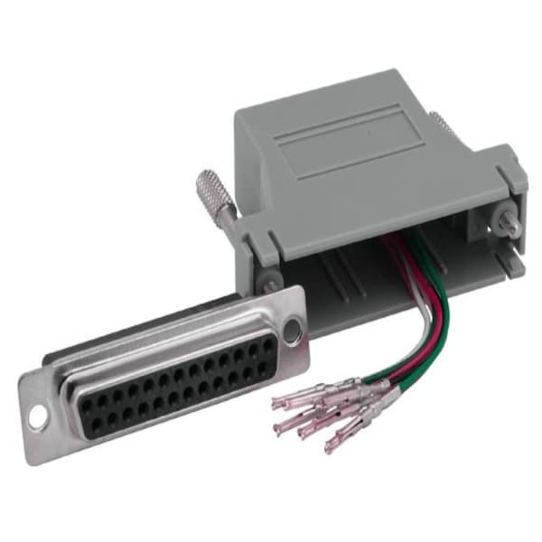 DB25 Female to RJ45 Modular Adapter - Extend Serial Connections Long DistanceConnect Serial Devices Over Long Distances: The DB25 Female to RJ45 Modular Adapter provides a Effective solution for extending serial connections using twisted pair wire. Ideal for dump terminals, PCs, telecom equipment, and more serial devices with DB25 female connectors. Features easy assembly with slotted thumbscrews. Please note: Requires assembly before use pictured disassembled.Extend Serial Communication: Run serial connections over long distances using affordable twisted pair wire.Versatile Compatibility: Works with various devices like dump terminals, PCs, and telecom equipment that feature DB25 female connectors.RJ45 Connector for Long Range: Utilizes RJ45 ports for extended serial connections compared to standard DB25 cables.Easy Assembly: Slotted thumbscrews enable quick and secure connection wiring configuration required.Requires Pre-Assembly: Adapter arrives disassembled; wiring is necessary for functionality.