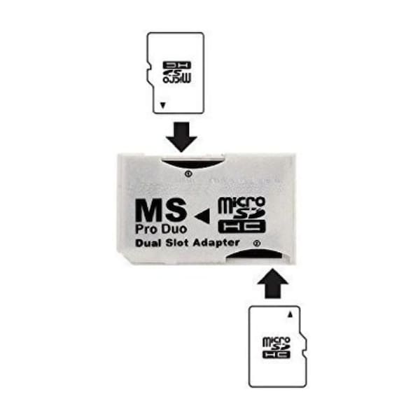 Dual Slot MicroSD to MS PRO DUO Adapter, Black MicroSD or MicroSDHC Cards White
