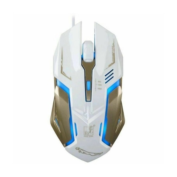 Gaming Mouse 4 Button USB Wired LED Breathing Fire Button 1600 DPI Laptop PC WHITE