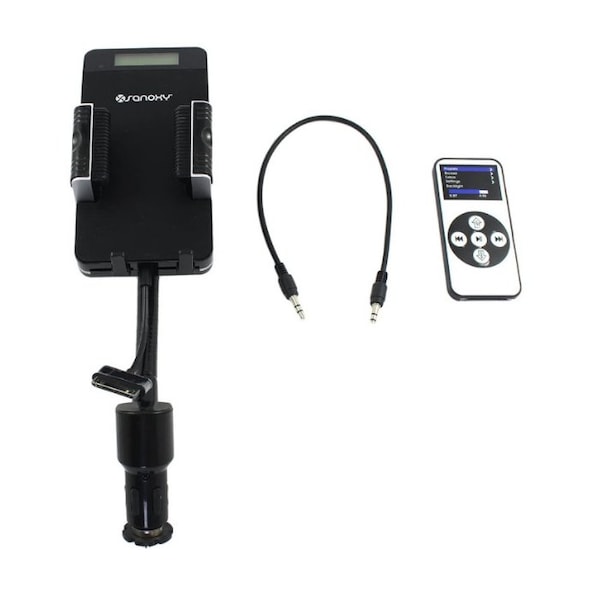 SANOXY Car Charging Dock Station with Rapid USB Charger Port, Car Power Outlet, Gooseneck Holder with Rubberized Grip for MP3 iPod. This Handsfree car kit is compatible with all generations of MP3 iPod Nano and Touch. SANOXY Phone Holder,Car Charger,FM Transmitter 3 in 1 Car Mount Holder/ Cell Phone Gooseneck Holder /Car Dock Station /Car Mount Holder with FM Transmitter /FM Radio Transmitter/ USB Car Charger/Lighter Charger DC Port,3.5 mm Stereo Output. Hands-free All-in-One FM Transmitter with Car Charger Lighter. Capable of building connection between your smart phone and your car radio so as to play the music in your smartphone through car audio. 3.5mm LED Stereo FM Radio Transmitter Car Mount Holder with micro USB Charging Port and Handsfree Calling for Smartphone and MP3 Players and more