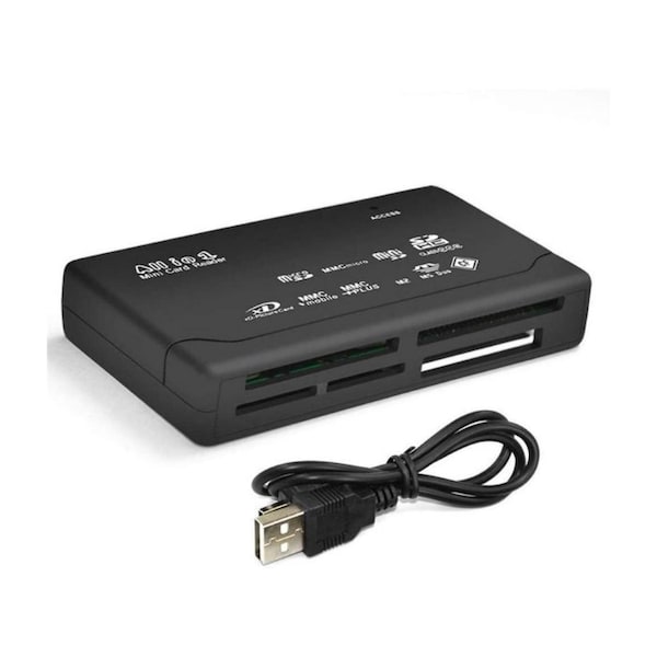 SANOXY all in one memory card reader makes easy work of transferring files between different types of HC memory cards and your PC.. You can move, save, copy, or delete many types of data from your HC card for example photos, videos, MP3's, etc.. Simply place your card in its corresponding slot on the reader and then plug the reader into your computer via the USB port.. Note:You can just read only one card with this although it has so many ports.. Supported Cards: CF I & CF II HDSC CARDS SDHC CLASS 2 SD Micro SD Mini SD adapter required MS MS Pro MS Duo MS Pro Duo. MS MG. RS MMC. MMC 4.0. Ultra II SD. Extreme SD. T-Flash no adapter required. MMC micro card. M2 adapter required. Memory Stick. Memory Stick PRO. Memory Stick Micro PRO Duo or PRO adapter needed. Memory Stick Duo PRO. XD Cards