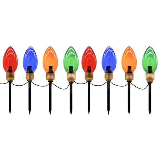 You can add a festive twinkle to your walkways with this multicolor pathway light set 5pack and enhance your holiday atmosphere with a colorful display These Christmas lights feature waterproof covers to withstand the season's elements They are made with C7 bulbs It's easy to decorate by simply staking them to the ground and plugging them in