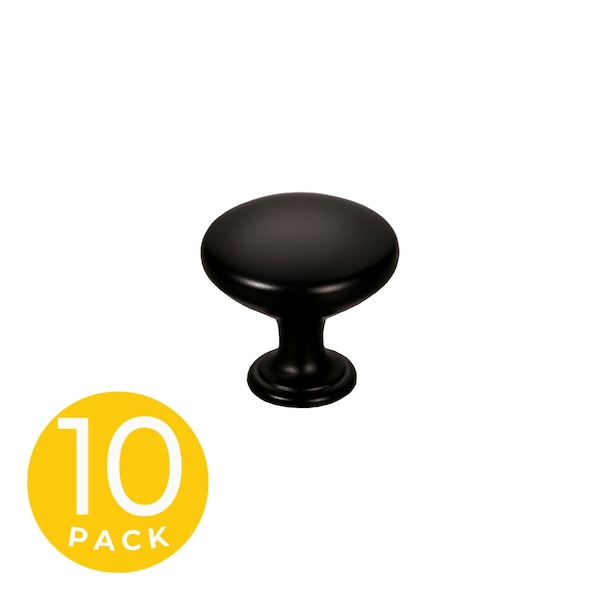 Alpha Series 1 in. Modern Black Round Cabinet Hardware Knob, 10PK