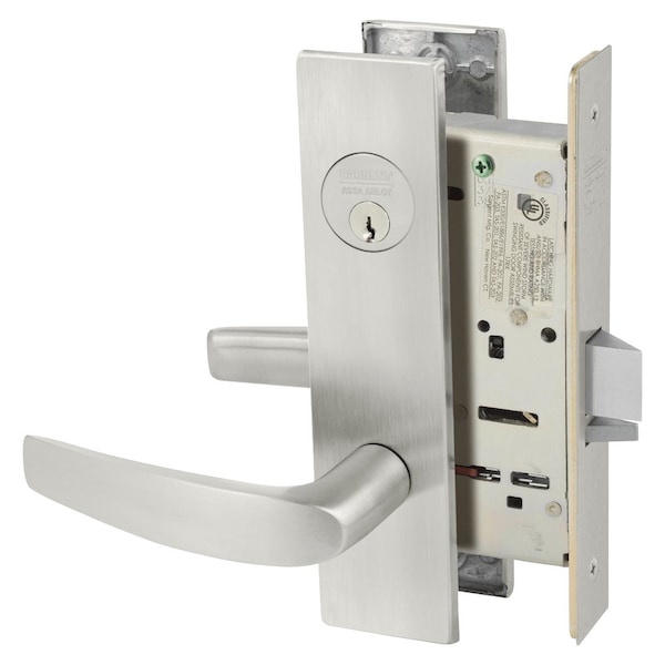 Grade 1 Classroom Mortise Lock, B - Lever, LW1 - Escutcheon, Field Reversible, Conventional Cylinder, ASA Strike, Satin Stainless Steel