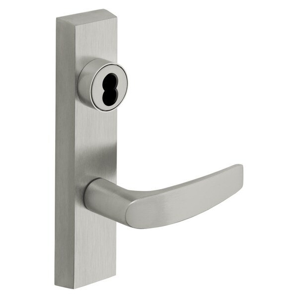 Grade 1 Exit Device Trim, Storeroom Function, Key Unlocks Trim, Trim Retracts Latch/Trim Relocks when Key is Removed, For Surface Vertical Rod and Mortise 8700, 8900 Series Devices, SFIC Prep Less Core, B Lever, RHR, Satin Chrome