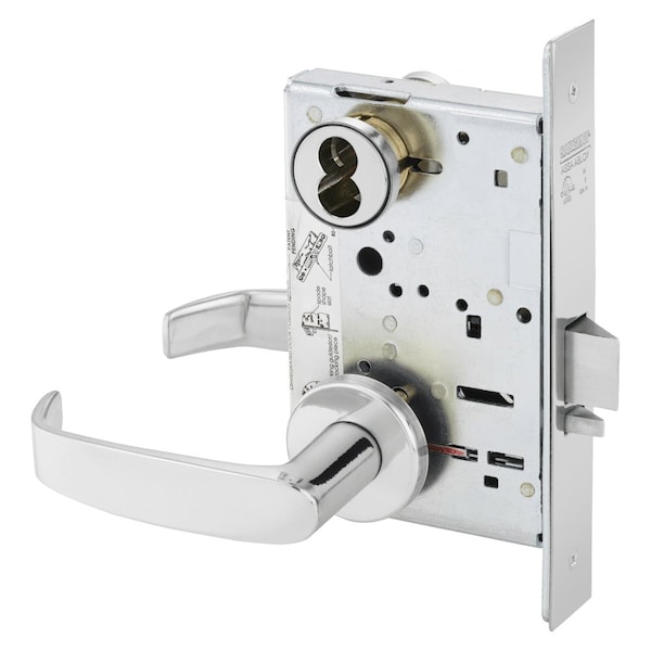 Office or Entry Mortise Lock, LN Rose, L Lever, LFIC Prep Less Core, Bright Chrome