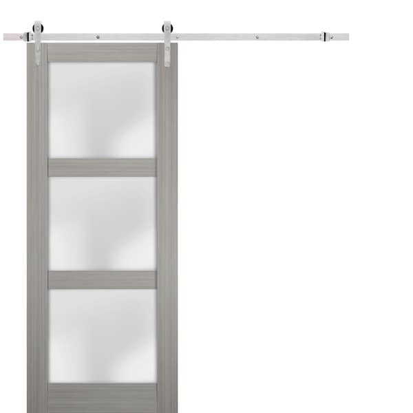 SartoDoors - the european doors of modern and traditional design. French style here! Best choice for bedroom, bathroom or closet - warm look and bright colors, high quality materials and soft opening. Finish - eco-veneer made in Italy. Door made of solid pine wood. Thickness of the door - 1 3/5". Thickness of the glass - 1/4", of Frosted glass. Doors are no pre-drilled for the hardware. Set includes: - door slab; - stainless steel rail 6.6FT with predrilled holes; - hangers with wheels; - door stops; - floor guide; - all mounting screws; NO FORMALDEHYDEEnvironmentally friendly using only latest eco-friendly materials. Company requirements the safest materials. We take care about your family. SartoDoors are recommended for Applying in hospitals, childcare centers and networks catering.SOUND ATTENUATIONDoor's 1 3/5" thick solid composite wood construction yields 30% noise reduction over standard doors.CONSTRUCTIONDoor is manufactured from a single piece of wood and will give several generations of normal usage with minimal care. Door with hardware included, slide door, door with silver rail.