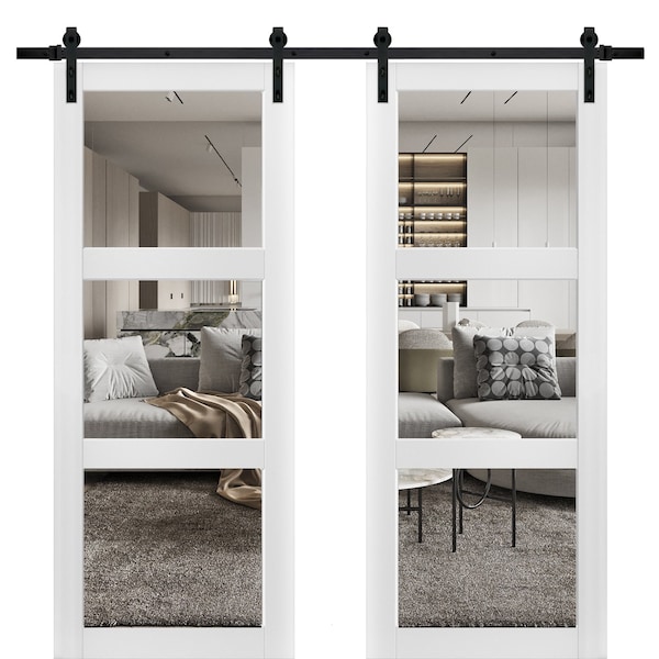 SartoDoors - the european doors of modern and traditional design. French style here! Best choice for bedroom, bathroom or closet - warm look and bright colors, high quality materials and soft opening. Finish - eco-veneer made in Italy. Door made of solid pine wood. Thickness of the door - 1 3/5". Thickness of the glass - 1/4", 3 lites of Clear glass. Doors are no pre-drilled for the hardware. Set includes: - 2 doors slabs; - steel rails 13FT total with predrilled holes; - 4 hangers with wheels; - 4 door stops; - 2 floor guide; - all mounting screws; NO FORMALDEHYDEEnvironmentally friendly using only latest eco-friendly materials. Company requirements the safest materials. We take care about your family. SartoDoors are recommended for Applying in hospitals, childcare centers and networks catering. SOUND ATTENUATIONDoor's 1 3/5” thick solid composite wood construction yields 30% noise reduction over standard doors.CONSTRUCTIONDoor is manufactured from a single piece of wood and will give several generations of normal usage with minimal care. Door with hardware included, slide door, door with double tracks.