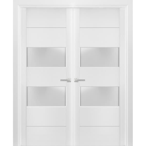 SartoDoors - the european doors of modern and traditional design. French style here! Best choice for bedroom, bathroom or closet - warm look and bright colors, high quality materials and soft opening. Finish - eco-veneer made in Italy. Door made of solid pine wood. Thickness of the door - 1 3/5". Thickness of the glass - 1/4", 2 lites of Glass. Doors are not pre-cut for the hardware. Assembly of frames and trims required. Doors work with all swing directions. Rough opening can be calculated: “door width” + 2 1/2”; “door height” + 2”. Set includes: - 2 doors slabs; - trims (2.95” wide); - frames (for wall thickness from 4” to 5 1/2”); - 2 passage lever/knob; - non-mortise hinges; NO FORMALDEHYDEEnvironmentally friendly using only latest eco-friendly materials. Company requirements the safest materials. We take care about your family. Sarto Doors are recommended for Applying in hospitals, childcare centers and networks catering. SOUND ATTENUATIONDoor's 1 3/5” thick solid composite wood construction yields 30% noise reduction over standard doors.CONSTRUCTIONDoor is manufactured from a single piece of wood and will give several generations of normal usage with minimal care. Door with frame, hung door, european door with molding, bedroom door.