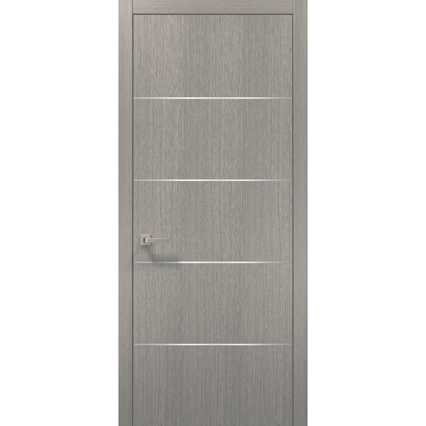 SartoDoors - European doors of modern minimal design. Best choice for bedroom, bathroom or closet - warm look and bright colors, high quality materials and soft opening. Finish - eco-veneer RENOLIT (Germany). Door made of solid pine wood with honeycomb. Thickness of the door - 1 3/5". 1/3" wide aluminum molding strips are inserted flush with the plane of the slab. Door is not pre-cut for the hardware. Assembly of frames and trims required. Door works with all swing directions. Rough opening can be calculated: “door width” + 2 1/2”; “door height” + 2”. Set includes: - door slab; - trims (2.95” wide); - frames (for wall thickness from 4” to 5 1/2”); - passage lever/knob; - non-mortise hinges; NO FORMALDEHYDEEnvironmentally friendly using only latest eco-friendly materials. Company requirements the safest materials. We take care about your family. Sarto Doors are recommended for Applying in hospitals, childcare centers and networks catering.SEALING GUM GERMAN COMPANY DEVENTERIt has a special profile that allows to protect your home from dust, makes a cozy and quiet atmosphere around every day. On another side it allows you to save 35 % more heat and save up to 20% to the bill.SOUND ATTENUATIONDoor's 1 3/5” thick solid wood construction yields 30% noise reduction over standard doors.CONSTRUCTIONDoor is manufactured from a single piece of wood and will give several generations of normal usage with minimal care. Door with frame, hung door, european door with molding, bedroom door.