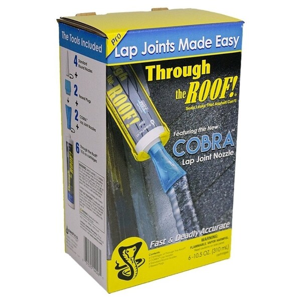 Sashco Lap Joint Nozzle Kit, Includes: 6 10.5 oz Cartridge Through The Roof, 2 Cobra Lap Joint Nozzle with Replaceable Plug Cap and 4 Round Nozzle