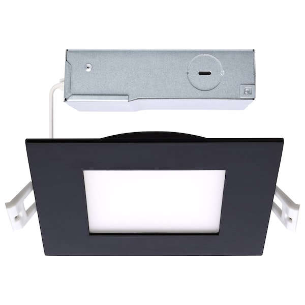 10 Watt LED Direct Wire Downlight 4-Inch CCT Selectable Square Remote Driver Black Finish