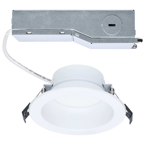 The SATCO NUVO Performer Series LED Recessed Downlight, S13510, delivers dependable, high-quality illumination for commercial environments. This 4-inch round downlight features wattage selectable operation (6W/9W/12W) with lumen outputs up to 1100 lumens and 90 CRI light for accurate color rendering. Providing up to 91 LPW performance, it replaces up to a 75W incandescent fixture. IC rated, airtight, and suitable for wet locations, S13510 is ENERGY STAR and Title 24 compliant. FT6 cabling and a remote driver support flexible commercial installations, while field-installable trim accessories add design versatility. A 50,000-hour rated life.