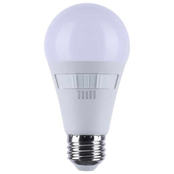 12W A19 LED, 27K/3K/35K/4K/5K CCT Selectable, Medium Base, White, 120V
