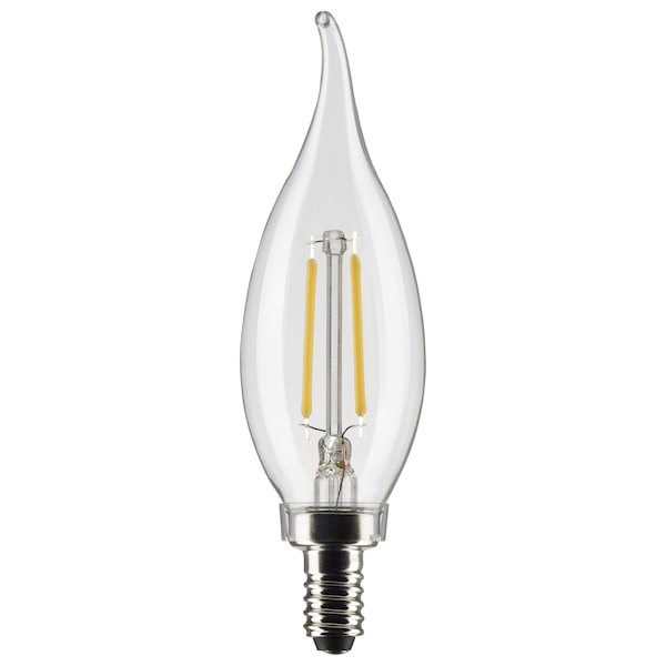 Satco's S21294 3-watt LED lamp is traditional, yet contemporary with its vintage style and energy-saving LED technology. Elegantly illuminate any room in the house with this dimmable, clear bulb. Sophisticated and modern, this lamp delivers 15,000 hours of warm white light. • MOL: 4.72 inches, MOD: 1.38 inches • Candelabra base • Clear finish • CA11 lamp shape • 2700K Warm white light • Rated for 15000 hours • Dimmable • Superior 90 CRI light quality
