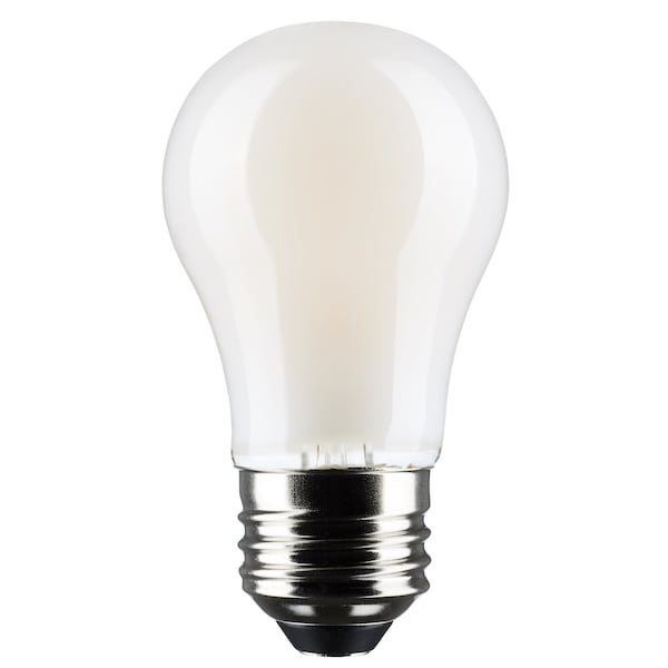 Satco's S21874 5.5-watt, A15 LED bulb with a medium base is dimmable and offers warm white light with a 320 degree beam spread. Wet rated for use in kitchens and bathrooms, the carded 2-pack is suitable for retail display. Elegant and long-lasting, this frosted bulb delivers 15,000 hours of exceptional illumination.