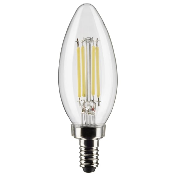 Satco's S21274 5.5-watt LED lamp is traditional, yet contemporary with its vintage style and energy-saving LED technology. Elegantly illuminate any room in the house with this dimmable, clear bulb. Sophisticated and modern, this lamp delivers 15,000 hours of warm white light. • MOL: 3.97 inches, MOD: 1.38 inches • Candelabra base • Clear finish • B11 lamp shape • 3000K Warm white light • Rated for 15000 hours • Dimmable • Superior 90 CRI light quality