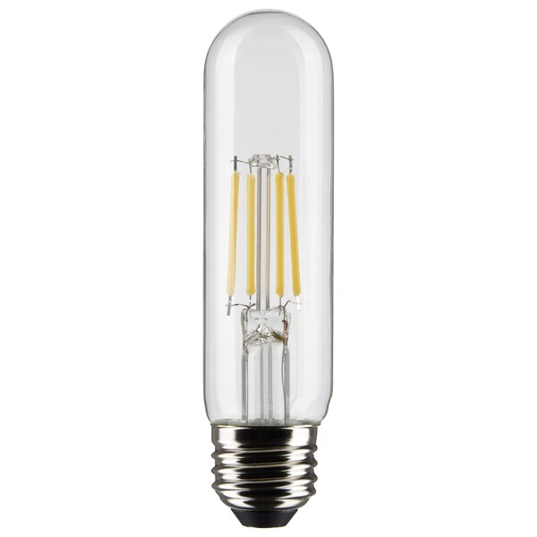 Satco's S21346 5.5-watt LED lamp is traditional, yet contemporary with its vintage style and energy-saving LED technology. Elegantly illuminate any room in the house with this dimmable, clear bulb. Sophisticated and modern, this lamp delivers 15,000 hours of cool white light. • MOL: 5.00 inches, MOD: 1.25 inches • Medium base • Clear finish • T10 lamp shape • 4000K Cool white light • Rated for 15000 hours • Dimmable • Superior 90 CRI light quality