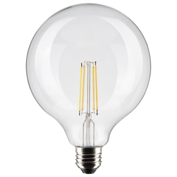 Satco's S21258 8-watt LED lamp is traditional, yet contemporary with its vintage style and energy-saving LED technology. Elegantly illuminate any room in the house with this dimmable, globe-shaped bulb. Sophisticated and modern, this lamp delivers 15,000 hours of warm white light. • MOL: 6.54 inches, MOD: 4.88 inches • Medium base • White finish • G40 lamp shape • 3000K Warm white light • Rated for 15000 hours • Dimmable • Superior 90 CRI light quality