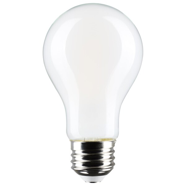 Satco's S12467 8-watt, A19 LED bulb with a medium base is dimmable and offers soft white light with a 280-degree beam spread. wet-rated for use in kitchens and bathrooms, this soft white bulb is sold in a convenient 4-pack. Elegant and long-lasting, this soft white bulb delivers 15,000 hours of exceptional illumination.
