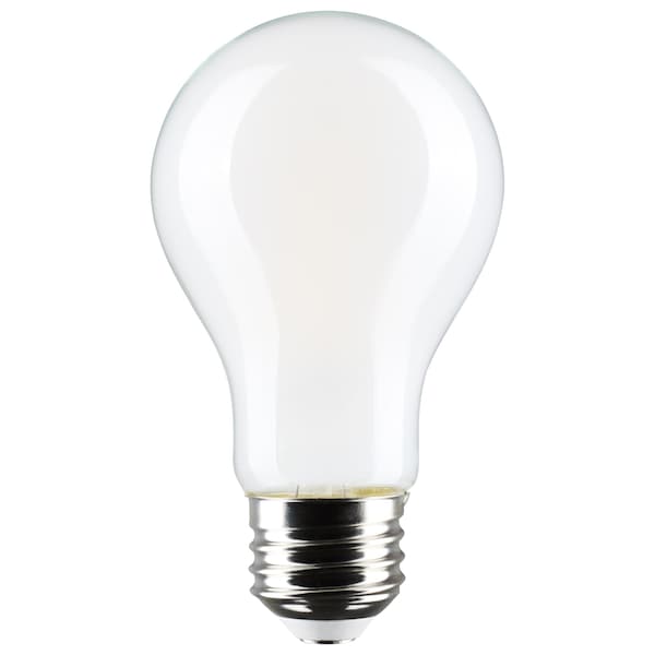 The S12151 Dim to Warm filament A19 bulb by SATCO NUVO delivers cozy, incandescent-style dimming, warming from 3000K to 2000K for an inviting atmosphere. Ideal for residential or decorative use, it features a frosted glass finish for soft diffusion, a standard E26 base, 360 degree illumination, and a 90 CRI for rich, vibrant color. Rated for wet locations and operating at 120V, it blends classic warmth with LED performance.