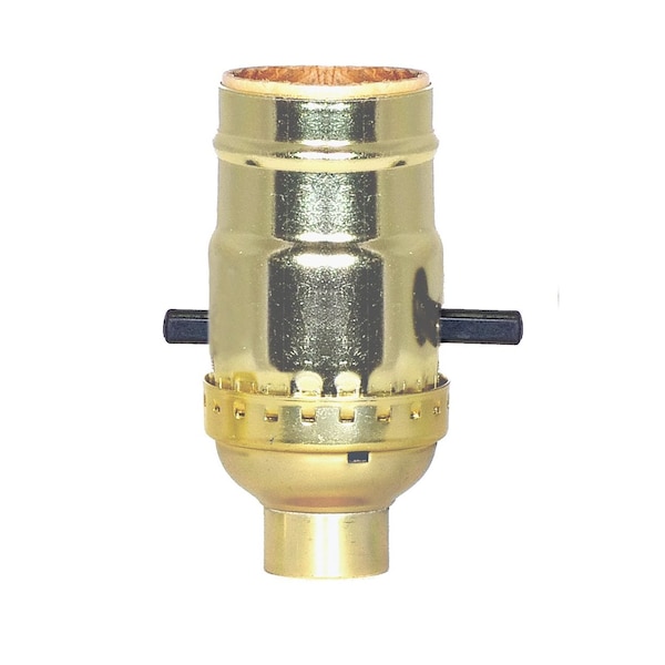 On-Off Push Thru Socket, 1/8 IPS, Aluminum, Brite Gilt Finish, 660W, 250V, With Set Screw
